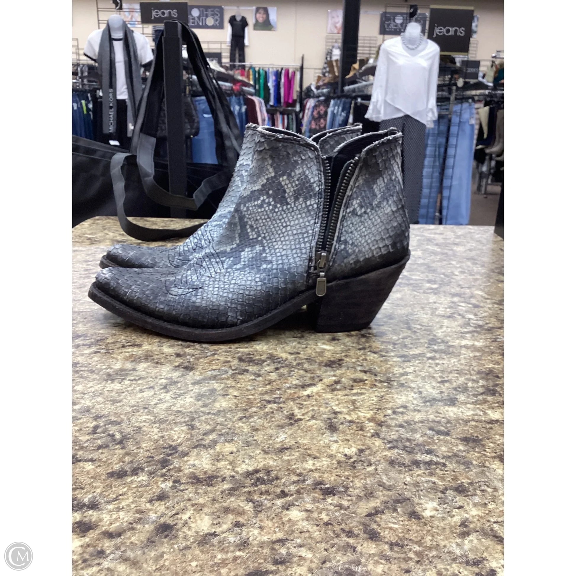 Step into the wild side with these Western boots by CMB in striking snakeskin print, size 8. Exude confidence and style with every step.