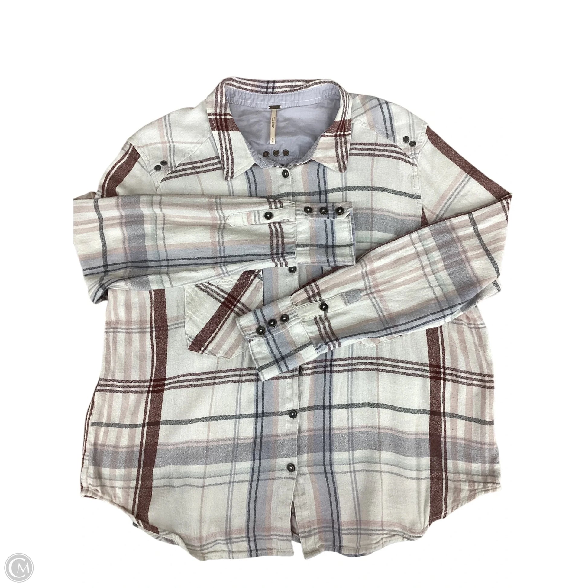 Top Long Sleeve By Free People In Plaid Pattern, Size: M